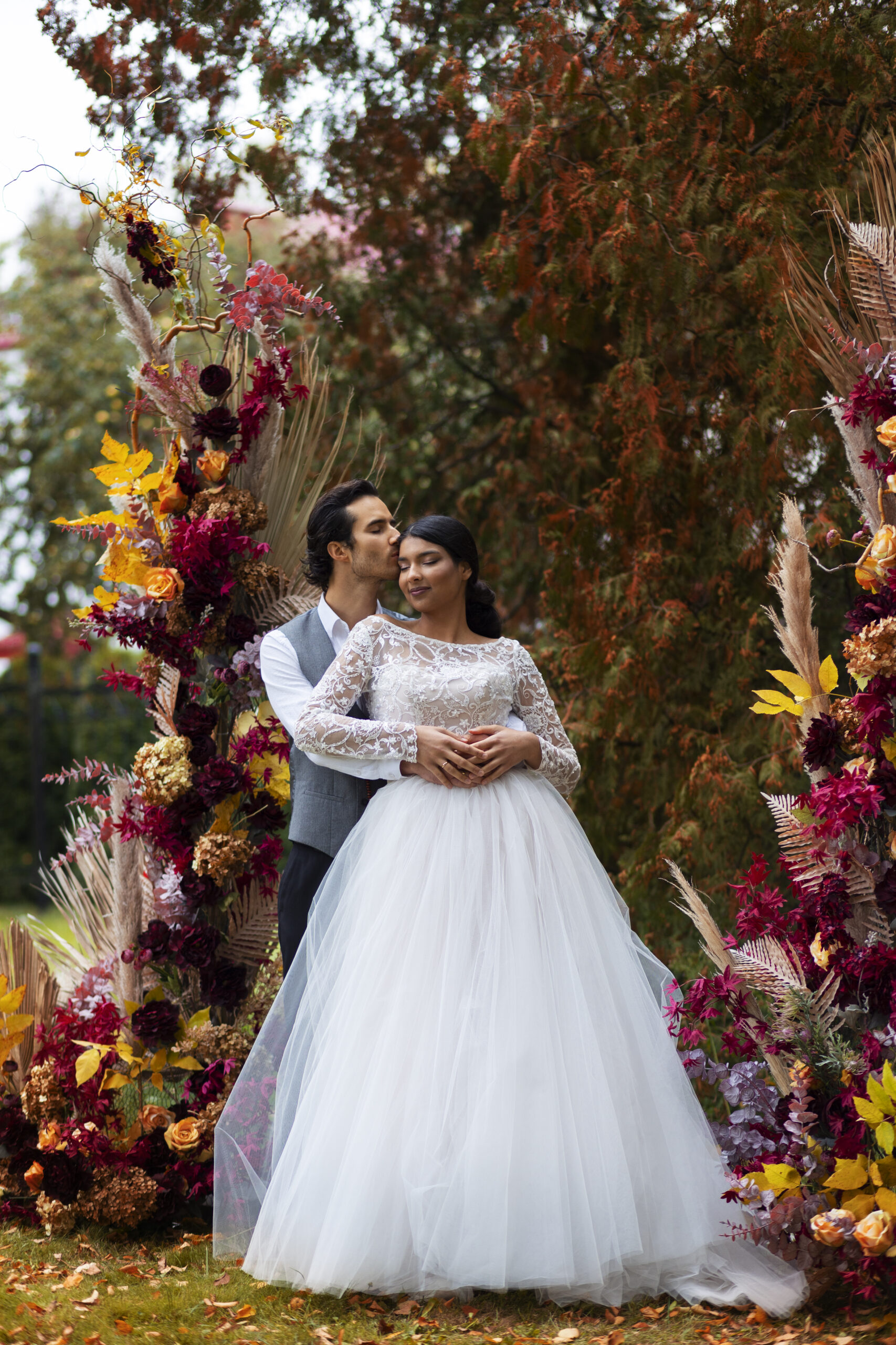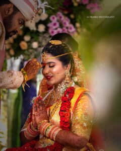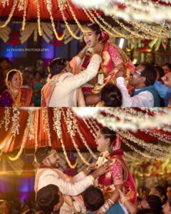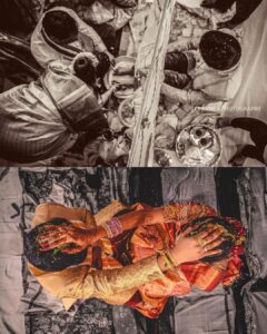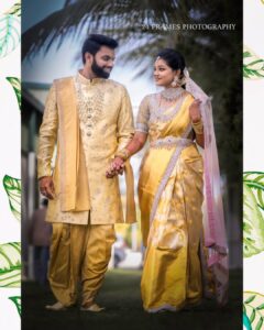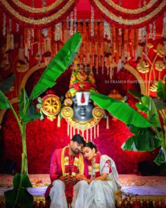 Ritual with coconut leaves during traditional Hindu wedding ceremony